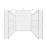 Het lichtgewicht peesdoek in combinatie met het innovatieve inklapbare frame zorgt voor een compacte transportoplossing. De beursstand wordt uiteraard geleverd in transporttassen voor optimaal gebruikersgemak. De beursstand tussen is daarnaast leverbaar in verschillende afmetingen.
