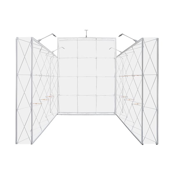 De beursstand tussen is voorzien van lichtgewicht elastisch peesdoek. Deze kan in een handomdraai om de constructie worden gespannen, waardoor strakke kreukvrije wanden ontstaan. De opstelling van de beursstand kop creëert door de opstelling van de drie een volledig afgebakende beursstand die “step into my office” uitstraalt.