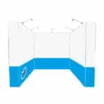 Ook de peesdoeken van de beursstand midden worden uiteraard geprint met ons "low speed" printproces, wat zorgt voor een kleurvast en -echt afdruk van uw beursstand thema. Het peesdoek is gemakkelijk te vervangen waardoor je beurswand goedkoop kan worden vernieuwd of flexibel is in te zetten voor meerdere thema's.