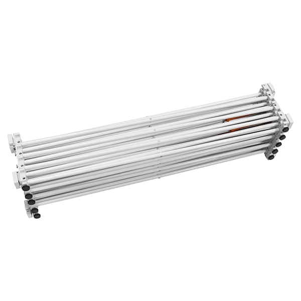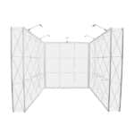 Een volledig modulaire beursoplossing met peesdoek in rondom opstellling die in een handomdraai is op te bouwen tot volwaardige beursstand.